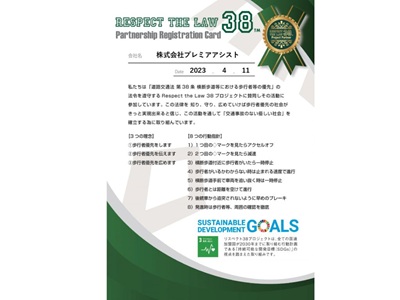 この度、プレミアアシストはRespect the law 38のプロジェクトに賛同いたしました。